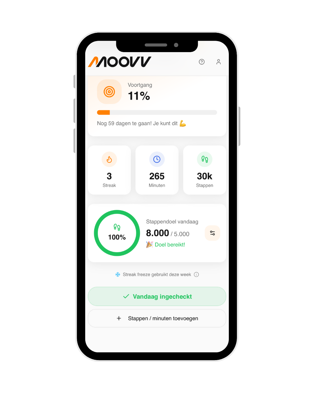Ja! Je mag de challenge ook buiten doen en in de frisse lucht je 10.000 stappen per dag zetten. Slecht weer? Dan kan je altijd je Moovv loopband erbij pakken!