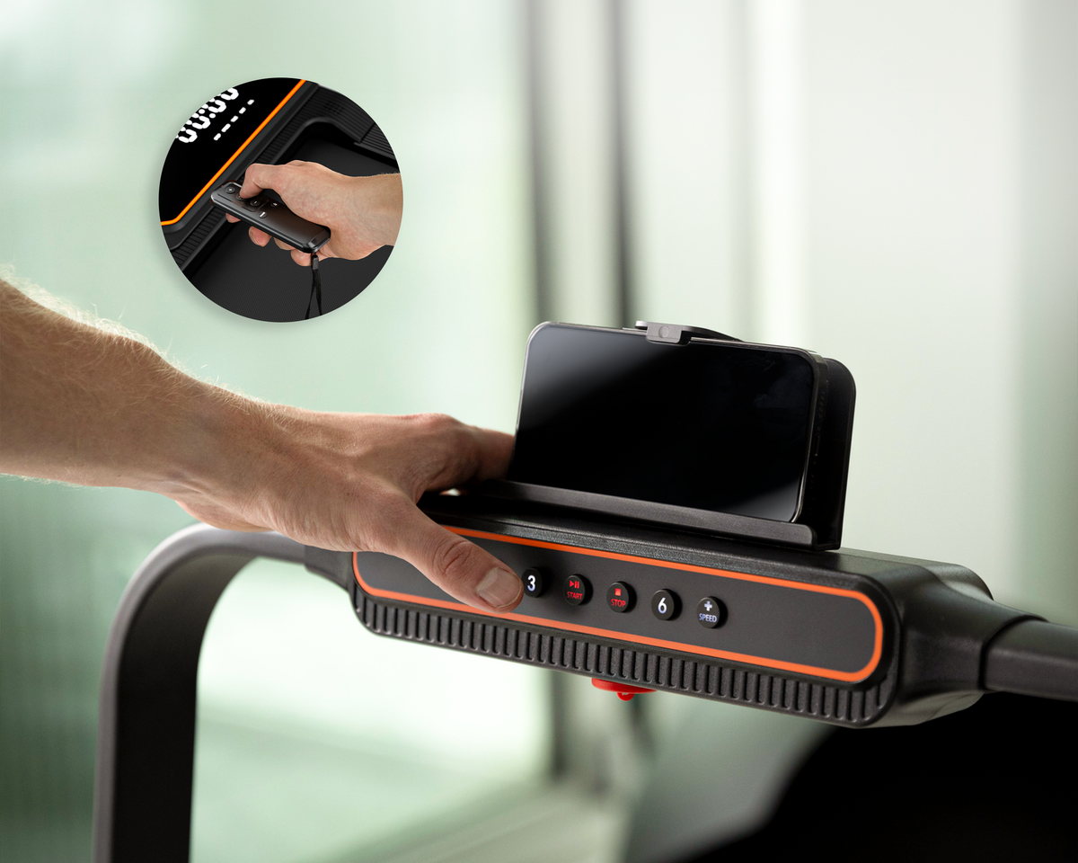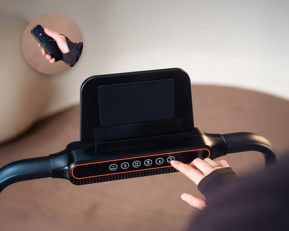 Bedien je loopband moeiteloos via de knoppen op de handrail of de afstandsbediening, voor volledige controle tijdens je work-out.